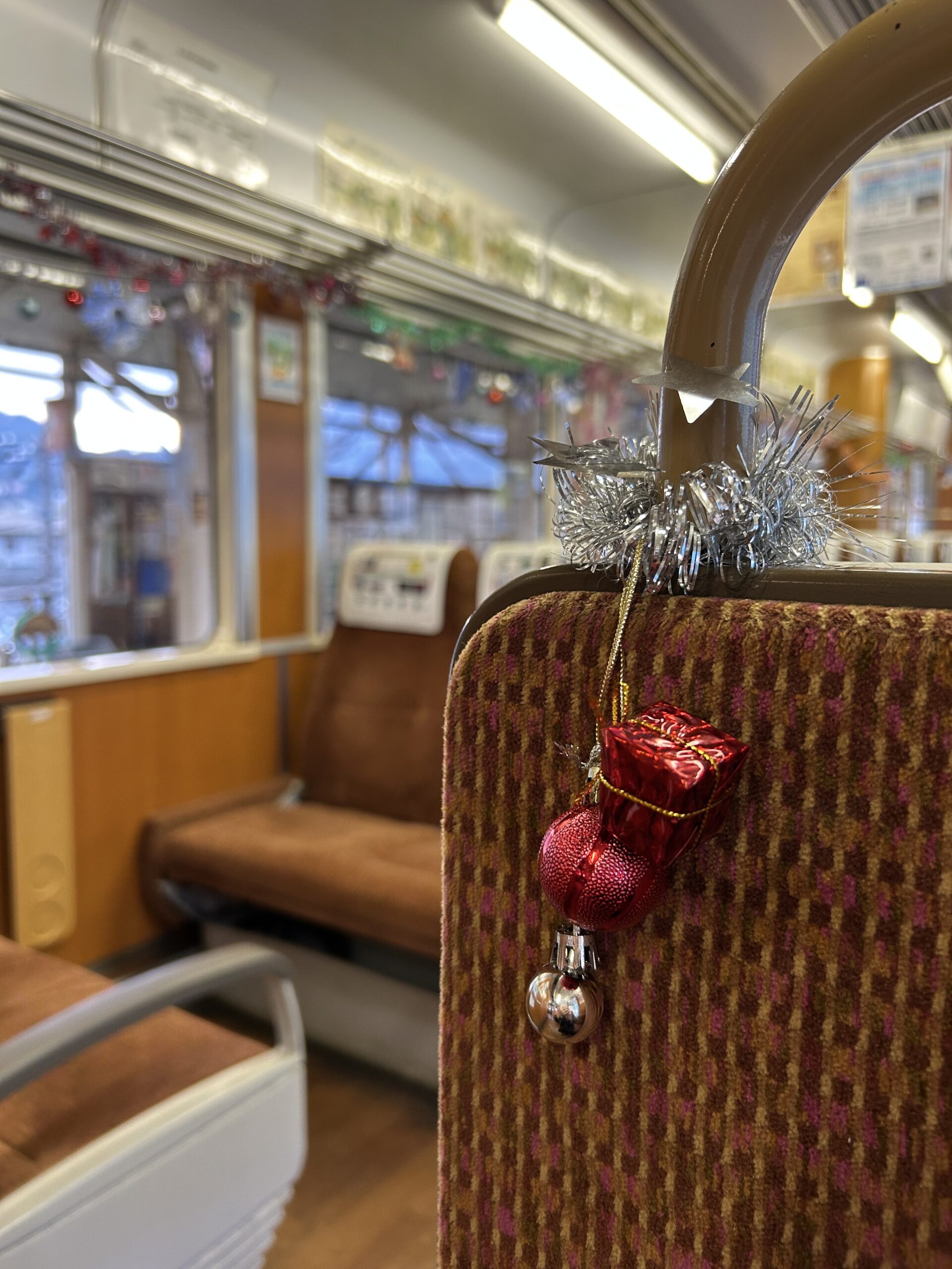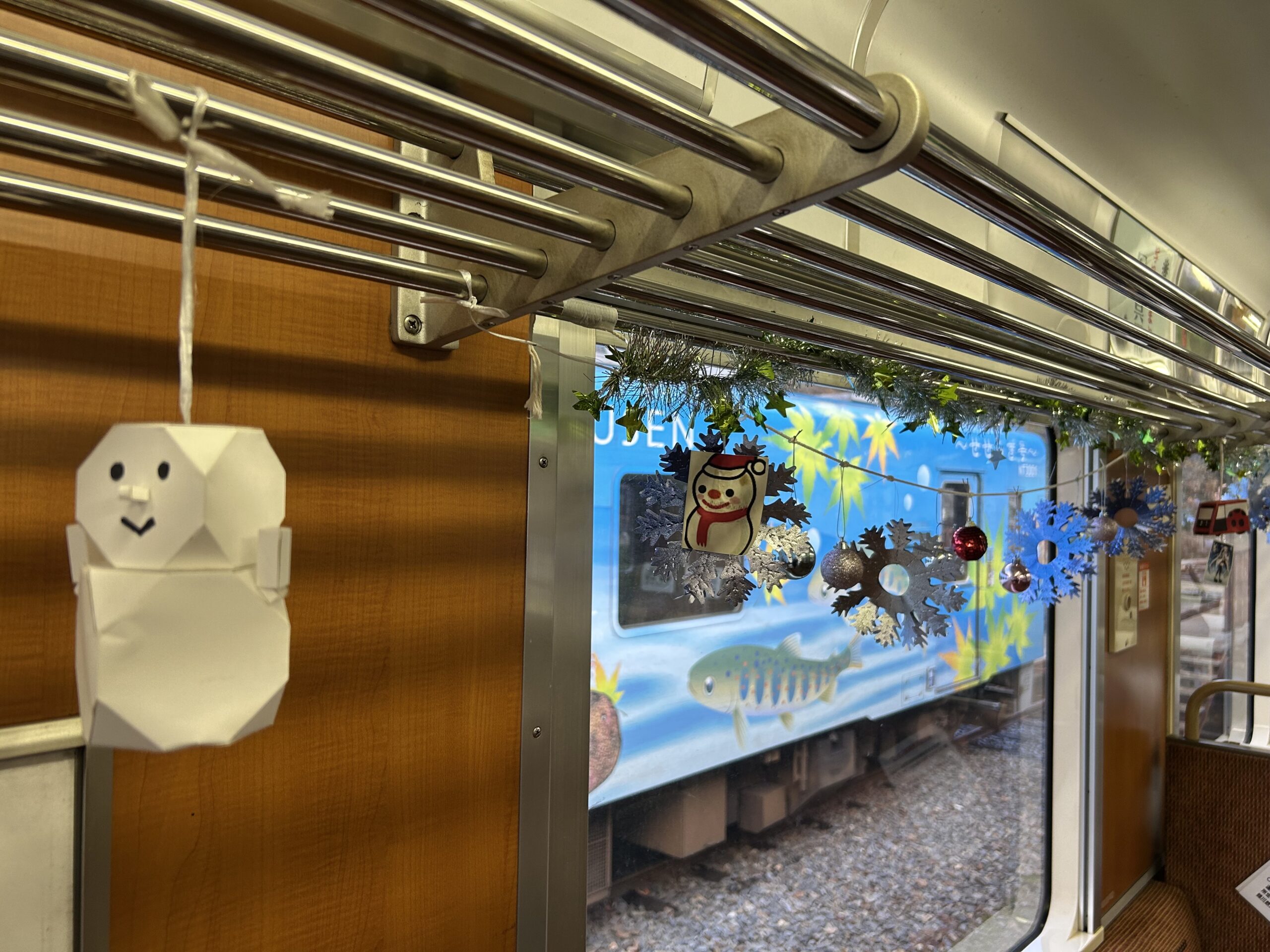 錦川清流線では、列車や錦町駅にクリスマスの飾りつけをして、12月25日までお客さまをおむかえします。